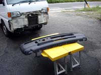 バンパーをはずして洗浄したところ ラジエターのパネルは内側から、バンパーは数個のボルトナットを外せば簡単に外せます。 バンパーとパネルが無いとマヌケだね。 |