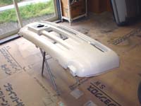 当社自慢の塗装ブースです? 上:バンパープライマー処理をしたところ 下:ホワイトに塗装したところ |
