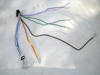 MDレシーバー付属の配線ですが、フロントスピーカーやアンテナコントロールなどは無いので7本使います(左)。スピーカー側の配線もギボシを付けます |