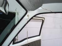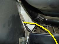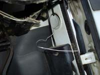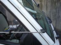 Aピラーに配線を通す工夫、アルミ線をメッセンジャーに使い引っ張りました。 |