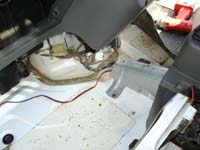 バッテリーからの配線。 熱対策のため、なるべくエンジンから遠い所を既設の配線に沿って配線します。 |
