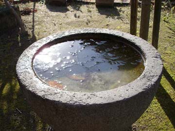 これは餅つき臼ですが、我が家は餅つきしないので野鳥のプールです。